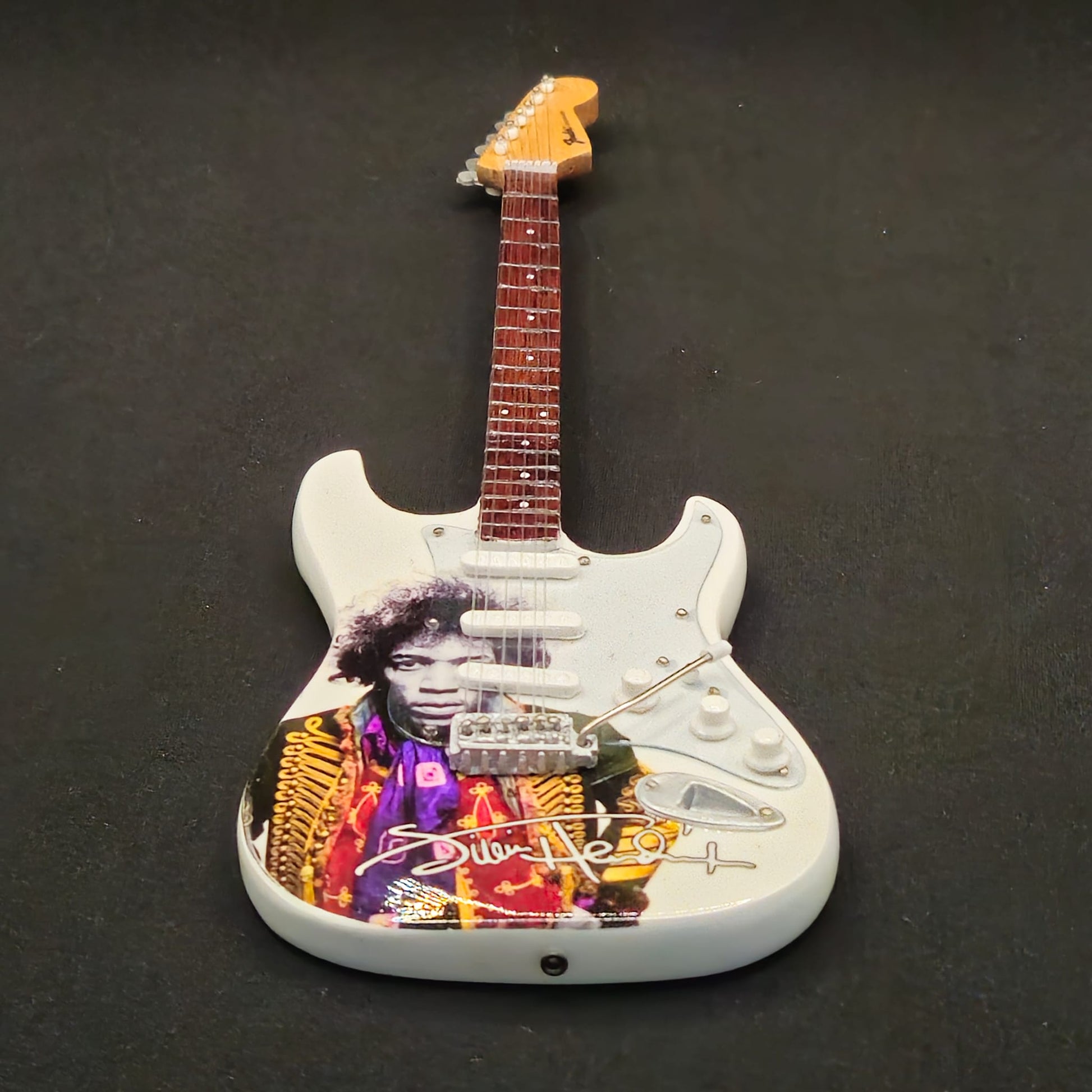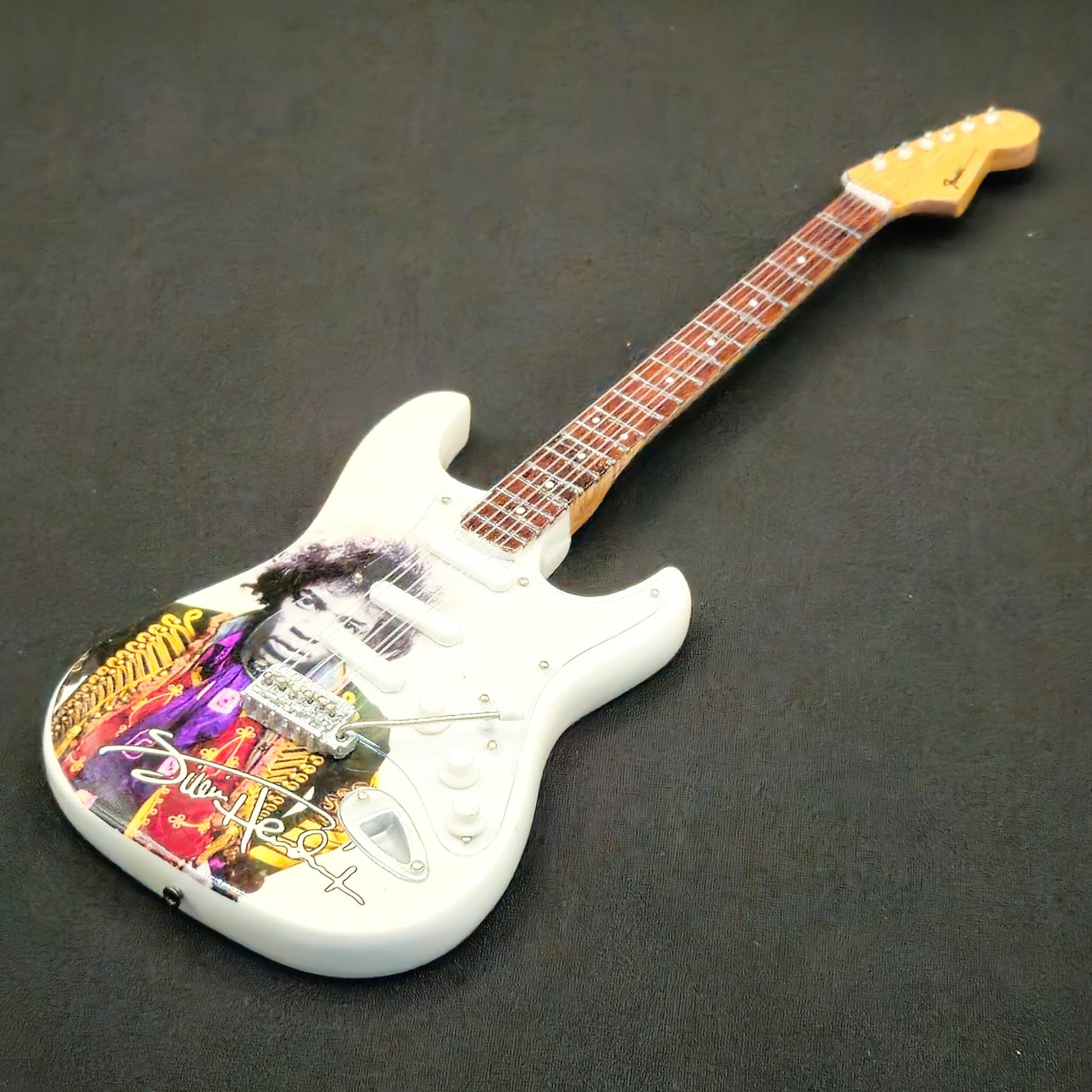 Miniature Guitar - Jimi Hendrix White Fender Stratocaster - Model Guitar Inc Stand