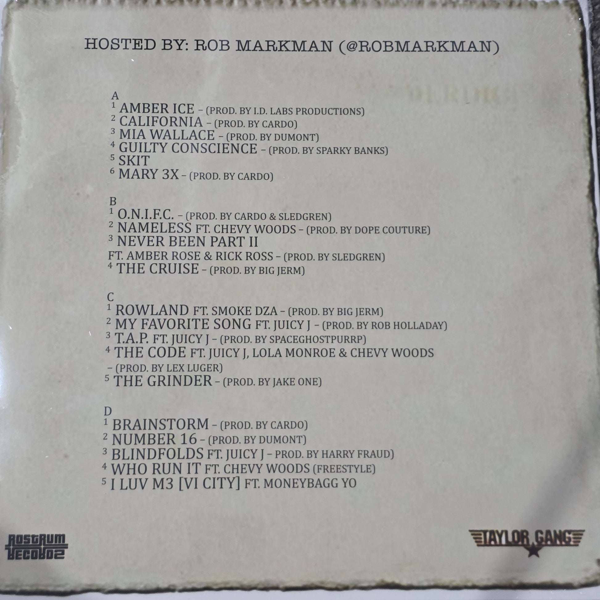 TAYLOR ALLDERDICE, 10th Mixtape by American rapper Wiz Khalifa, Rel on March 13, 2012. The 17-track mixtape was named after the high school which Wiz Khalifa attended. Incl Printed Inner Sleeve. White Coloured Vinyl unofficial